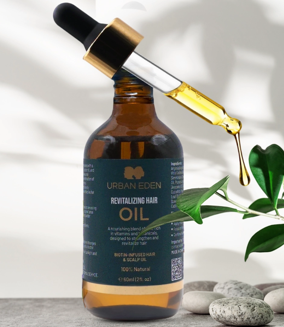 Experience the pinnacle of natural hair care with Urban Eden's Revitalizing Oil, meticulously crafted to nourish, strengthen, and revitalize, unlocking your hair's inherent beauty.